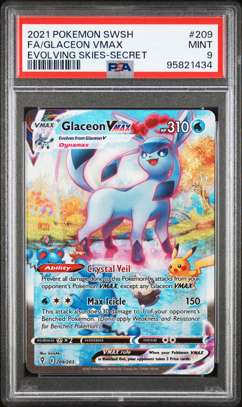 2021 Pokemon Sword & Shield Evolving Skies Fa/Glaceon Vmax #209 PSA 9